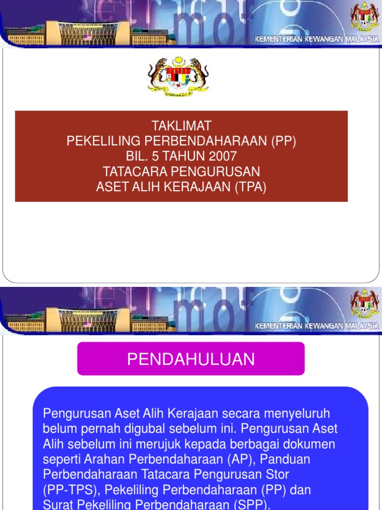 Sila download tatacara pengurusan aset tak alih kerajaan klik disini. Memberi penjelasan mengenai pekeliling perbendaharaan bil.5 tahun 2007 tatacara pengurusan aset alih kerajaan (tpa). Pengurusan aset/ kp1 tatacara pengurusan aset alih lgm. 5 tahun 2007 bahagian perolehan dan pengurusan aset, kpm. Nyatakan adakah tatacara pengurusan aset alih kerajaan.